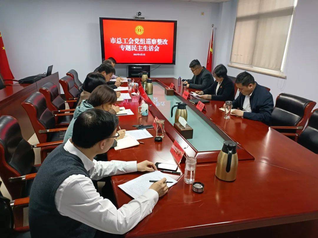 按照市委巡察工作统一安排,4月3日下午,市总工会党组召开巡察整改专题民主生活会。市纪委监委派驻第七纪检监察组四级主任科员曹勇进同志、市高层次人才信息服务科科员刘国梁同志到会指导,市总工会党组书记、常务副主席闫羲和主持会议,全体班子成员参加会议。