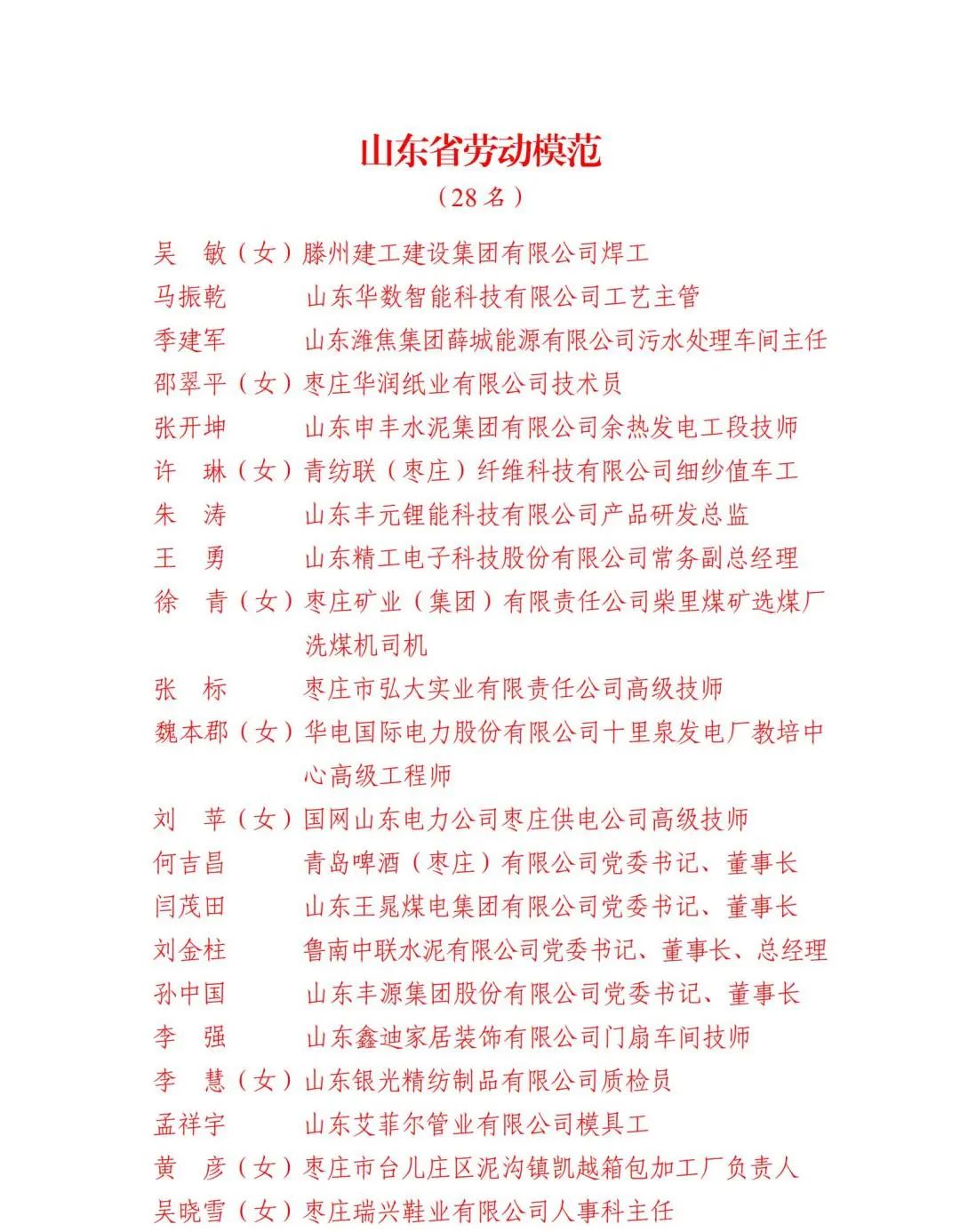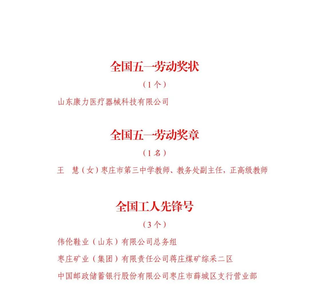 我市1个集体荣获全国五一劳动奖状、1人荣获全国五一劳动奖章,3个集体荣获全国工人先锋号,28人荣获山东省劳动模范,12人荣获山东省先进工作者。