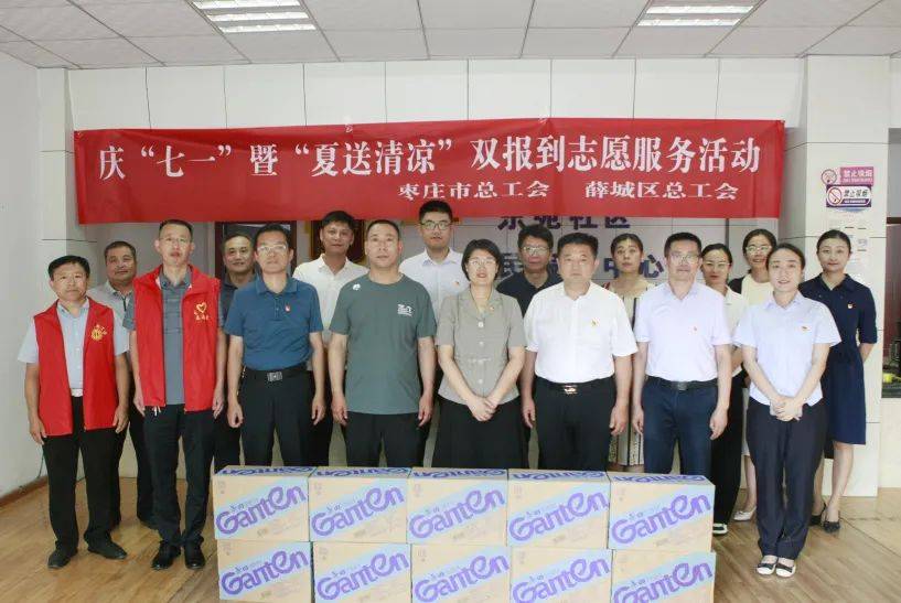 一次双报到志愿服务。市总工会联合薛城区总工会党员干部到薛城区东苑社区开展庆“七一”暨“夏送清凉”双报到志愿服务活动,看望慰问社区工作者及一线工作人员,指导落实好社区防暑降温各项措施,为社区送上义诊服务和矿泉水等防暑降温物资。