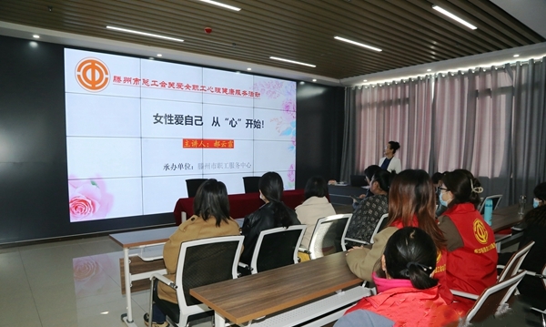 为庆祝第113个“三八”妇女节,关爱女职工心理健康,普及科学的心理健康知识,增强女职工心理保健意识,3月2日,滕州市东沙河街道新时代文明实践所联合总工会、团工委、妇联举办“三八”妇女节关爱女职工心理健康知识讲座活动,街道总工会及各基层工会女工委员共40余人参加讲座。