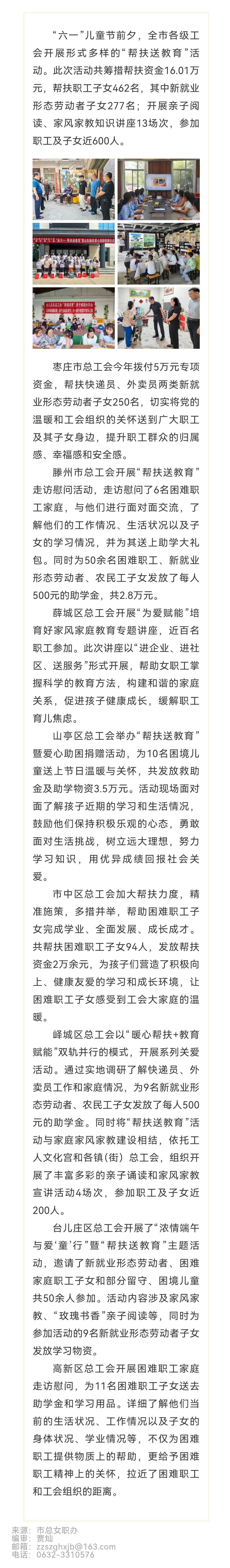 枣庄市各级工会积极开展“帮扶送教育”活动