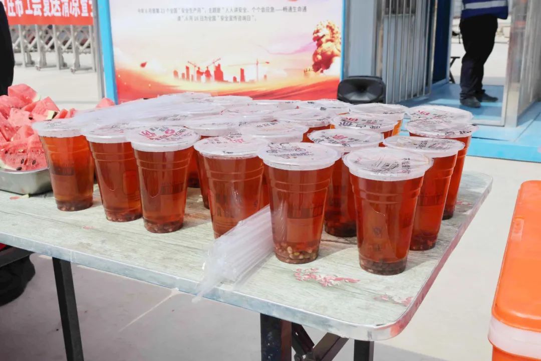 在枣庄翼云机场建设工地现场,徐婷一行为一线职工们送去了西瓜、绿豆汤、矿泉水、毛巾、水杯等防暑降温物品,向高温下奋战在一线的劳动者表示敬意和感谢,叮嘱他们坚守岗位的同时加强防暑降温,注意休息、爱护身体,以更安全、更健康的状态投入到工作中,做到安全、生产两不误。活动现场还为职工进行了夏季防暑降温安全知识宣传。