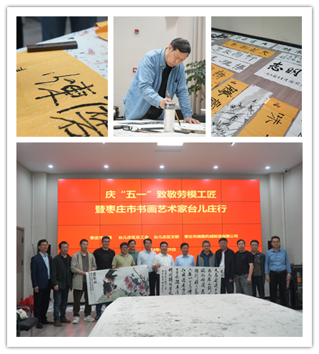 为大力弘扬劳模精神、劳动精神、工匠精神,进一步丰富企业职工精神文化生活,枣庄市文联、台儿庄区总工会主办、区工人文化宫承办的“庆五一·致敬劳模工匠暨枣庄市书画艺术家台儿庄行活动在枣庄市瑞隆机械制造有限公司举行。台儿庄区近年来省、市级劳模工匠、先进人物代表和一线相关负责同志参加活动